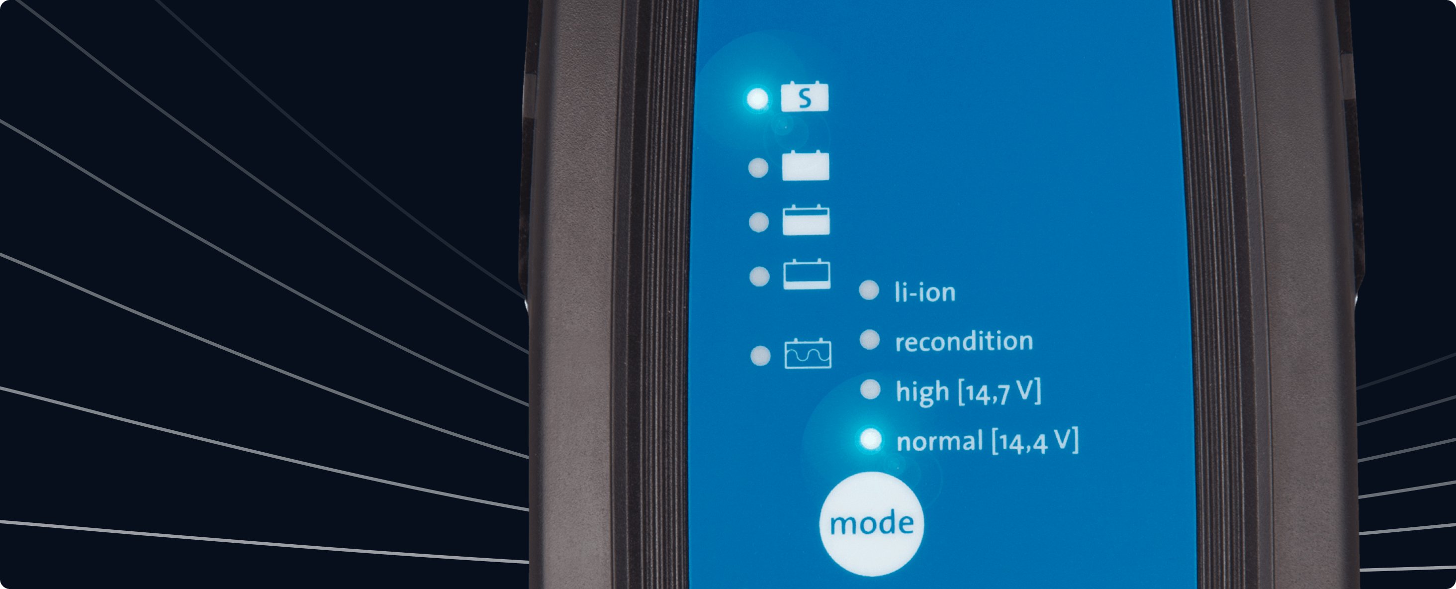 Vintage cruiser or cutting-edge sport bike, the Blue Smart Charger keeps any motorcycle ready to ride. Flooded batteries benefit from careful maintenance charging, AGM batteries from a dedicated charging profile, and lithium batteries from precise voltage control.