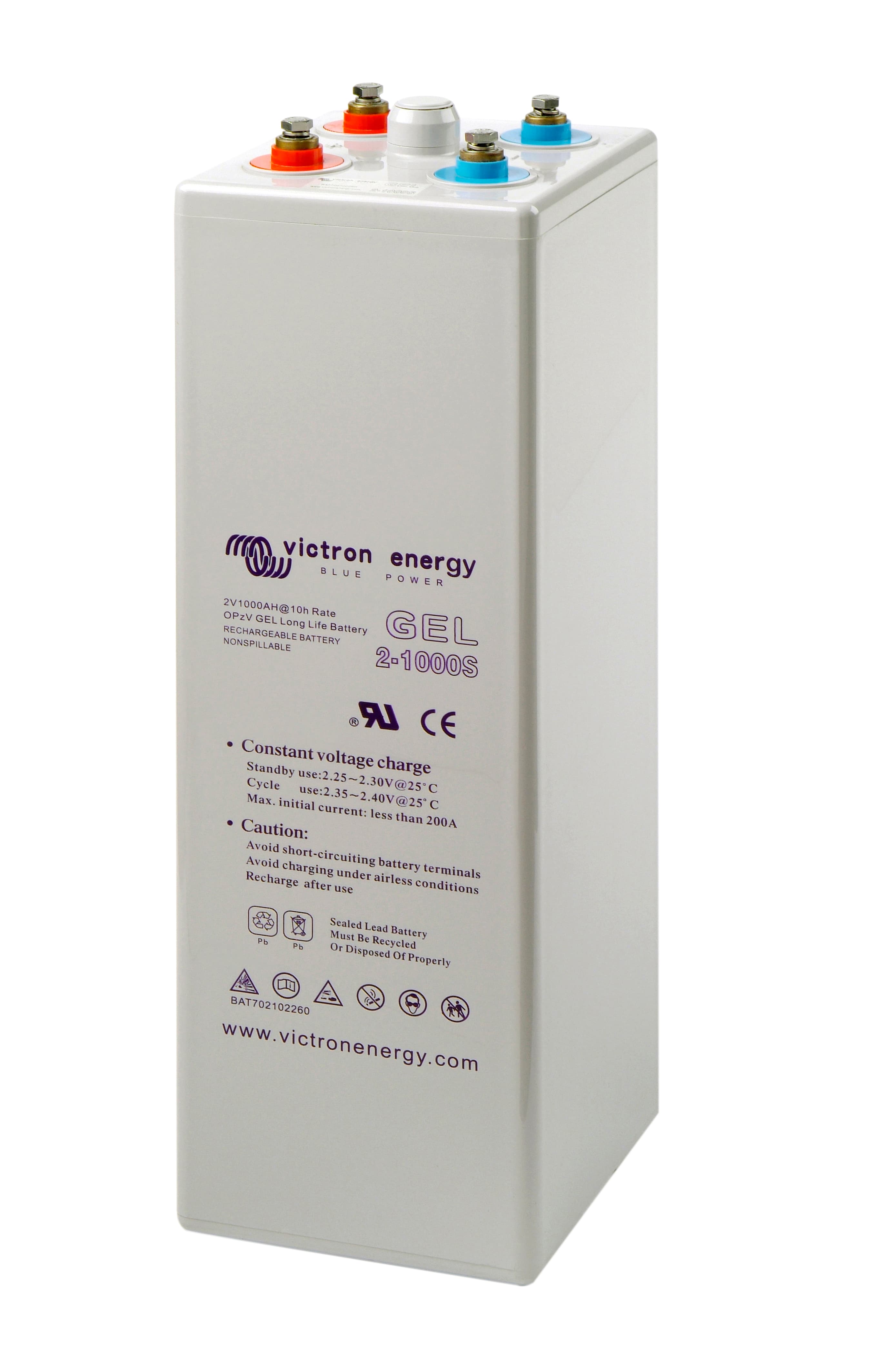 Лінійка GEL пропонує максимальну довговічність у глибокому циклі та довший загальний термін служби. Використання матеріалів високої чистоти та свинцево-кальцієвих решіток забезпечує особливо низький рівень саморозрядження акумуляторів лінійок AGM і GEL, тому вони не розряджаються повністю протягом тривалих періодів без заряджання. Обидві лінійки постачаються з просвердленими плоскими мідними клемами на M8, що забезпечують найкращий контакт і усувають потребу в клемах акумулятора. Акумулятори відповідають специфікаціям CE та UL, постачаються у вогнетривких контейнерах з АБС і мають міжнародну 2-річну гарантію Victron.