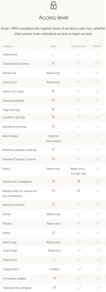 Key differences between Technicians and Site Admins include three restrictions: Technicians cannot delete a site, replace the GX device linked to a site, or remove other users’ access to the site.