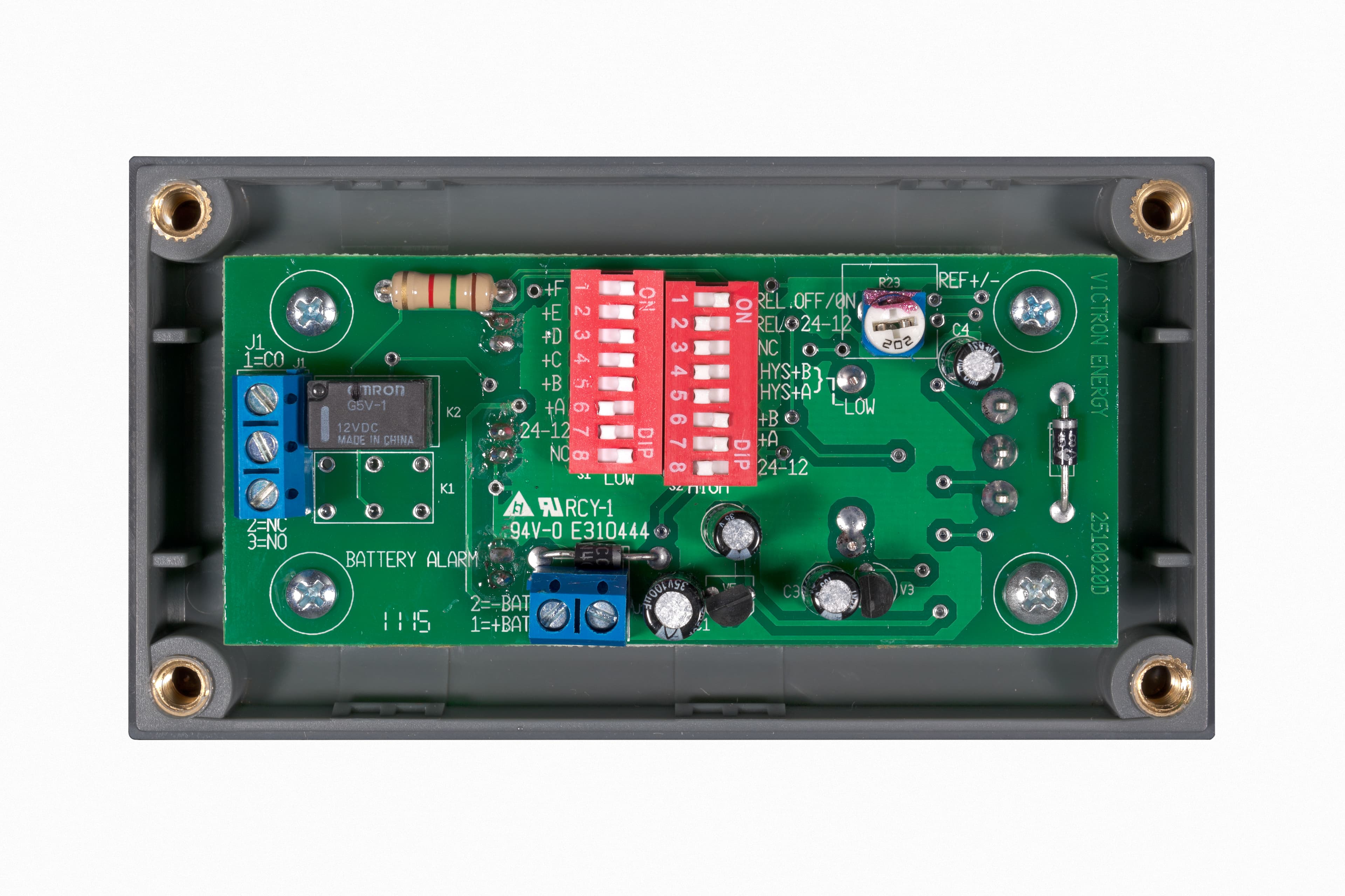 Battery Alarm — це невелика та недорога сигнальна панель, яка відстежує стан вашого акумулятора. Ця панель обладнана звуковою та візуальною сигналізацією, а також має безпотенційні контакти з нормально розімкненими та нормально замкненими контактами. Пороги сигналізації та гістерезис програмуються за допомогою DIP-перемикачів. Для отримання додаткової інформації див. посібник користувача.